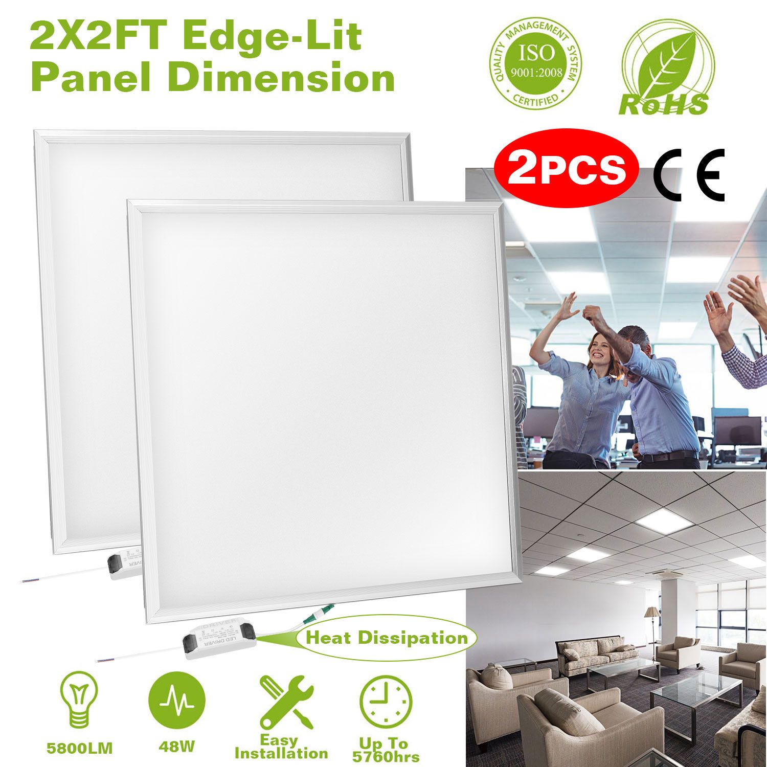 48W 2×2FT LED Panel Light 5800LM 7000K Ceiling Lighting 150W Equivalent LED Troffer Recessed Edge-Lit